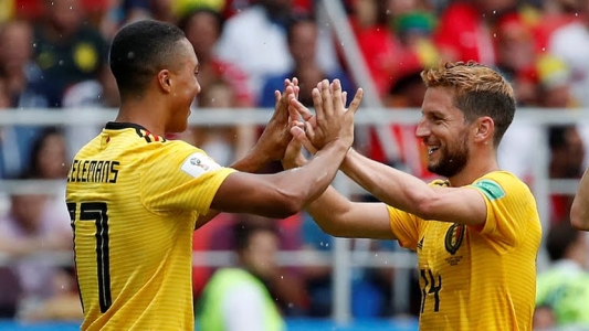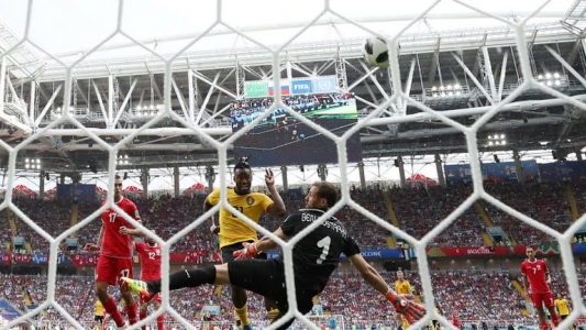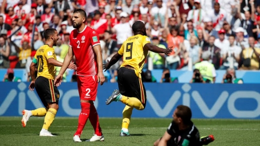 سجل خماسية بلجيكا الثنائي إدين هازارد في الدقيقتين 6 من ضربة جزاء و51 وروميلو لوكاكو في الدقيقتين 16 و48 بجانب البديل ميشي باتشواي في الدقيقة 90 وأحرز ثنائية تونس المدافع ديلان برون في الدقيقة 18 ووهبي الخزري في الدقيقة 90+3.
