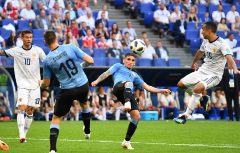 حسم منتخب أوروجواي تصدره للمجموعة الأولى، بعد فوزه على منتخب روسيا بنتيجة (3-0) في المباراة التي جمعتهما على ملعب كوزموس أرينا، في الجولة الثالثة والأخيرة من دور المجموعات، بنهائيات كأس العالم.