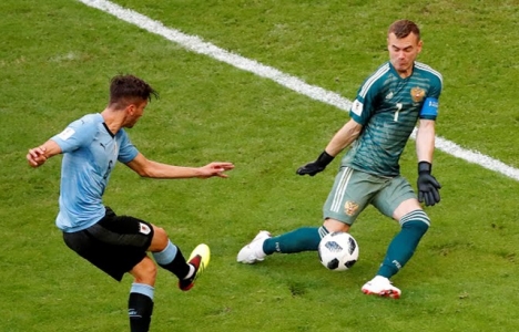 حاول الروس اختراق دفاعات أوروجواي في الربع ساعة الأولى عن طريق سرعة دينيس تشيرشيف، الذي عجز عن تقديم ما فعله في مبارتي مصر والسعودية نظرا لتواجد خمسة لاعبين في وسط ملعب الخصم.