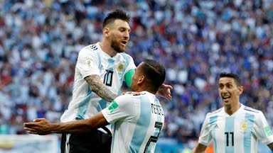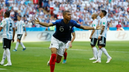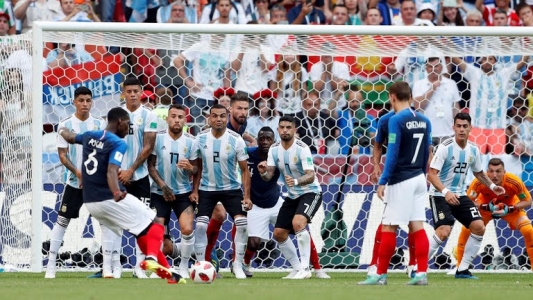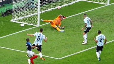 سجل رباعية فرنسا أنطوان جريزمان وبنيامين بافارد وكيليان مبابي "ثنائية" بالدقائق 13 من ركلة جزاء و57 و64 و68، مقابل ثلاثية للأرجنتين سجلها آنخيل دي ماريا وجابرييل ميركادو وسيرجيو أجويرو بالدقائق 41 و48 و93.