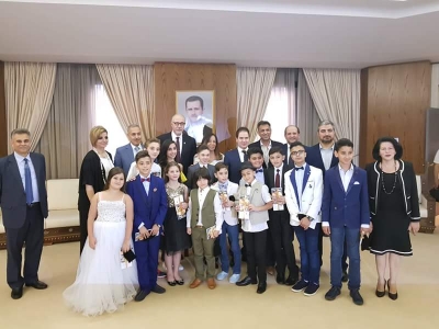 "نجومك بالعالي ياسورية" عنوان الحفل الذي أقيم في قصر المؤتمرات بدمشق تكريما لعدد من الأطفال الموهوبون المشاركين بعدد من المسابقات الغنائية العربية بحضور وزير السياحة بشر يازجي وعدد من الفنانين والنجوم السوريين.