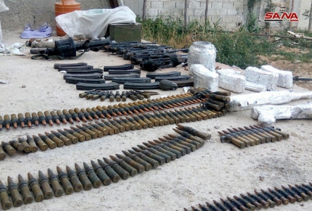عثرت وحدات من الجيش و القوات المسلحة على أسلحة و ذخائر بعضها أمريكي في بلدة يلدا شرق دمشق و فيما يلي بعض الصور التي وزعتها وكالة سانا.
