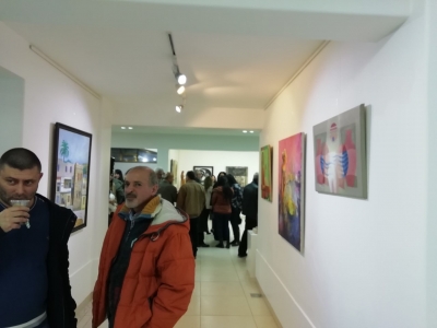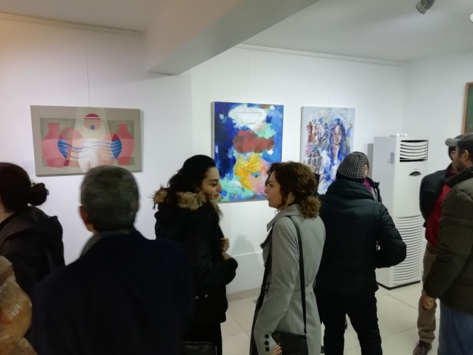 كانت الصالة تغص بالفنانين والزوار المهتمين بالفن والذين تلاقوا للتمتع ورؤية آخر الأعمال الفنية وتبادل أطراف الحديث وتذكرني هذه اللقاءات بالصالونات الأدبية قديماً والتي كانت تشكل فرصة للقاء والحوار والحديث في كافة جوانب الحياة ، فرتم الحياة السريع والمتسارع واللهاث وراء التحصيل المادي ولقمة العيش جعل فرص اللقاء بين بعض الناس قليلة بل تكاد تكون نادرة والذي يتخوف الكثيرون من "غربنة " حياتنا، أي انتقال عدوى الحياة الغربية إلينا، لذلك هناك تكمن أهمية اللقاءات والتواصل في هذه المعارض والنشاطات الفنية المختلفة.
