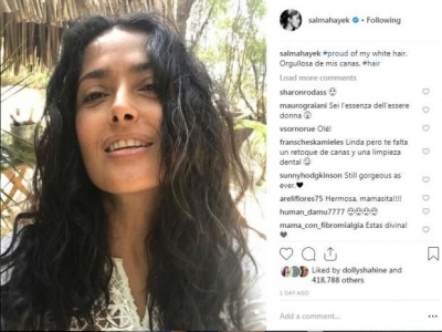وشاركت سلمى حايك يوم الأحد متابعيها على موقع "إنستغرام"، البالغ عددهم 8 ملايين معجب، صورة "سيلفي" لها، وهي بشعرها الأبيض الطبيعي.
