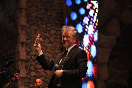 وتابع قائلا: أنا فقدت أغلى إنسانة في العالم لكن وجودي معكم اليوم فرح وواجب، وأسمحوا لي أن أقدم هذا الحفل الجميل لروح والدتي، وانشاء الله الأيام القادمة مليئة بالحب والفرح”.