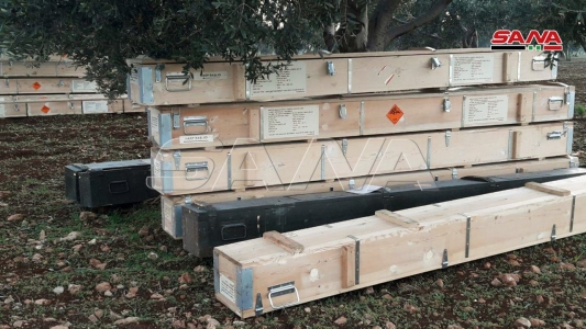 ضبط أسلحة وذخائر أمريكية الصنع في مقرات ومستودعات الإرهابيين ببلدة كفرعميم في ريف إدلب الجنوبي الشرق