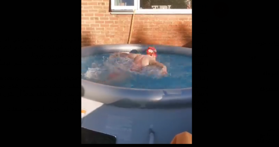 يتدرب البريطاني، آدم بيتي، بطل السباحة الأولمبي مؤقتا في حوض سباحة صغير في الحديقة الخلفية لمنزله.