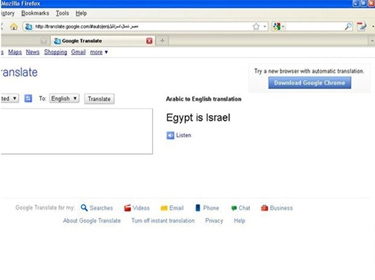 اثناء المظاهرات كلما كنت تستخدم كلمة جوجل للترجمة وتكتب كلمة مصر تحتل اسرائيل نجد الترجمة للانجليزية هو اسرائيل هى مصر