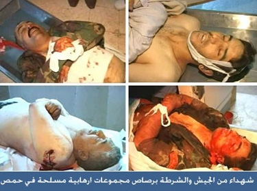 وبث التلفزيون صورا لجثامين الشهداء الذين استشهدوا برصاص المجموعات الإرهابية المسلحة وتعرضها للتمثيل الفظيع والتنكيل بها.