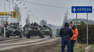 بالفيديو شاهد قوافل الجيش الروسي تتوقف مراراً لمرور سيارات المدنيين الأوكرانيين