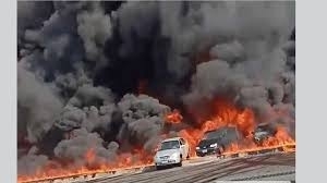 شاهد .. حريق ضخم في خط بترول على طريق مصر - الإسماعيلية