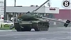 أحد المتظاهرين ضد العنصرية في الولايات المتحدة الأمريكية يستولي على مصفحة من الحرس الوطني و الشرطة تلاحقه ؟!