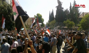 وقفة وطنية جماهيرية في السويداء رفضاً للعقوبات الأميركية على سورية
