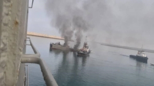 شاهد.. أول فيديو للفرقاطة الايرانية بعد تعرضها لحادث في سواحل جاسك.